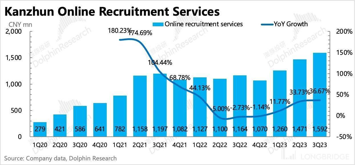 最终,付费企业数的增加的同时,企业付费 ARPU 降幅有明显放缓,共同作用于网络招聘收入同比增速继续加速至 36%。