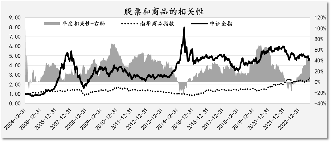 从商品和A股的收益相关性(见图2)来看,多数时候二者相关性不超过40%,甚至不少时间为零相关和负相关性。相关性较弱的资产在组合里能够起到较好的自然对冲效果,从表1来看,商品基金目前剔除联接基金和多重份额之后,只有13只基金,主要包含对标黄金现货和白银期货的贵金属基金、对标原油相关指数的能源类基金和3只商品期货ETF。自从2019年底3家基金公司基于《商品期货交易型开放式基金指引》“尝鲜”商品期货ETF之后,再未更进一步拓展商品基金名单。目前全市场缺少足够丰富的商品基金标的。