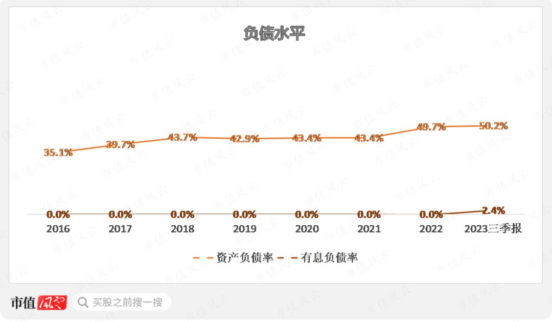 历史上公司基本无有息负债,仅2023年新增2亿元的短期借款,截至2023年三季度末,调整后的资产负债率(剔除合同负债)为31.6%。财务方面相对稳健。