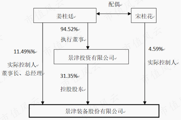 公司控股股东为景津投资,穿透后实控人为姜桂廷和宋桂花夫妇。截至2022年末,实控人持股比例为45.7%。