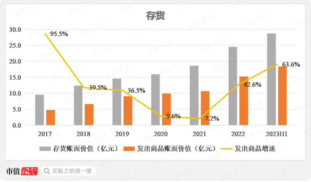 存货中的大头为发出商品,发出商品在一定程度上可作为未来收入的前瞻性指标。截至2023年6月末,发出商品账面价值为18.4亿元,同比增长63.6%。