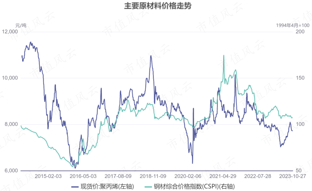 压滤机主要原材料为钢材和聚丙烯,均属于大宗商品,目前两者价格较前期高点下降明显。