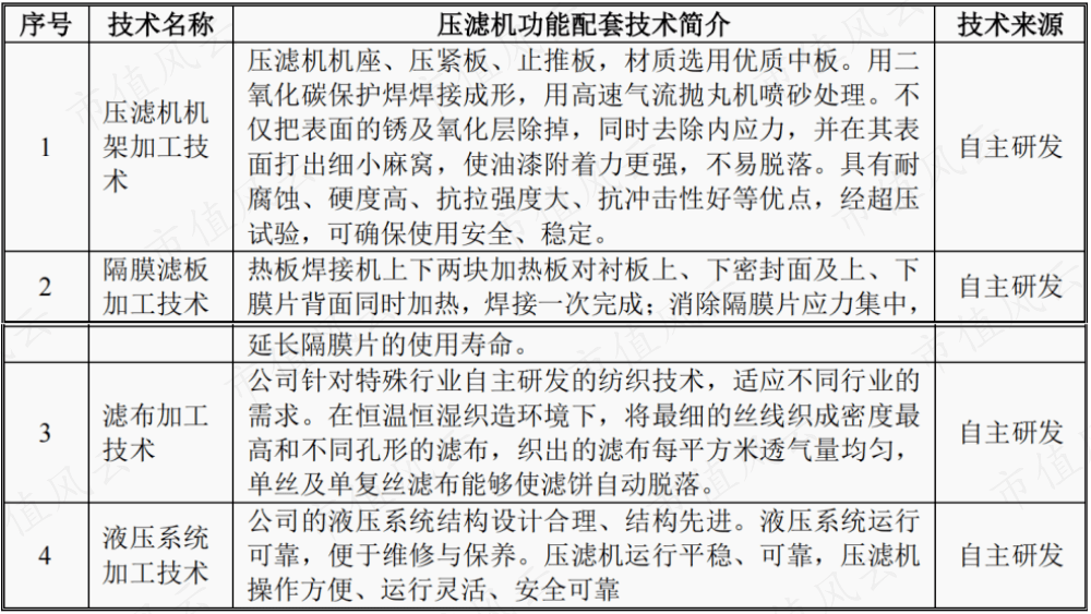 公司的核心技术主要由压滤机过滤系统及污泥处理工艺技术、压滤机功能配置技术、压滤机加工工艺核心技术三部分组成,核心技术均为自主研发。