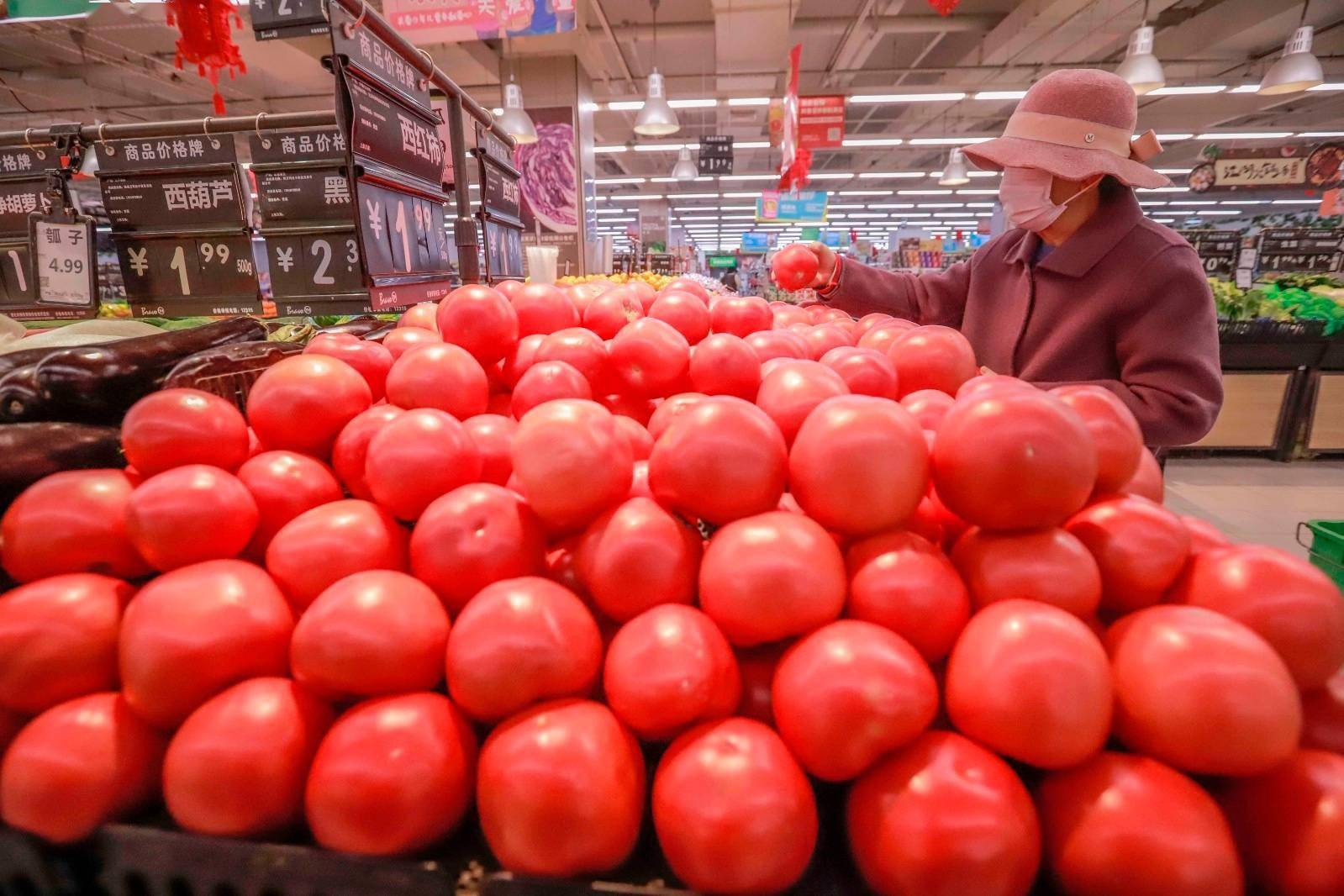 顾客在河北省遵化市一家超市选购蔬菜。(图片由CNSPHOTO提供)