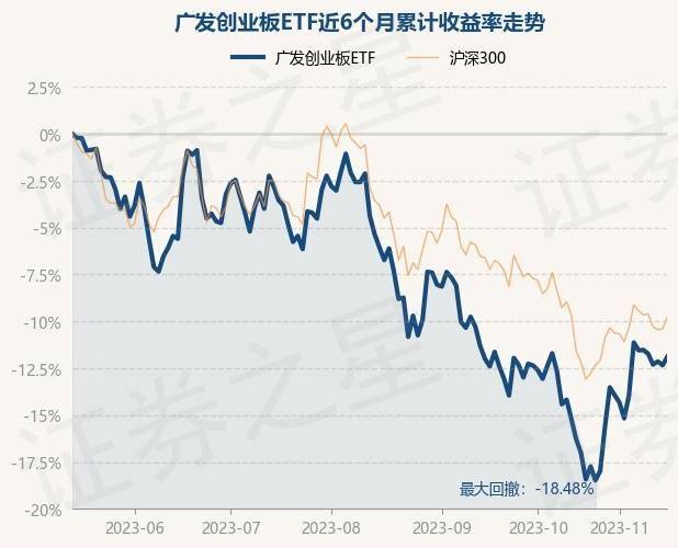 证券之星消息,11月15日,广发创业板ETF最新单位净值为1.1939元,累计净值为1.1939元,较前一交易日上涨0.52%。历史数据显示该基金近1个月上涨0.9%,近3个月下跌6.2%,近6个月下跌11.86%,近1年下跌16.5%。该基金近6个月的累计收益率走势如下图:
