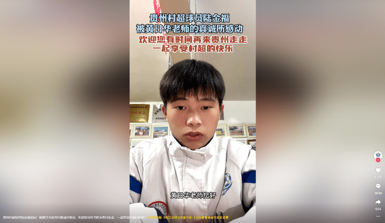 11月14日晚,陆金福通过贵州村超联赛官方账号发布视频,他在视频中说:“黄日华老师您好,我是贵州村超球员陆金福,看到您发的视频,被您的真诚所感动。踢球难免会有一些身体上的激烈碰撞,大家求胜心切。这次能去香港踢球,我觉得非常开心,第一次见到这么多明星,而且都没有什么架子,从下高铁开始,就感受到了你们的热情和友好,欢迎您有时间再到贵州走走,一起享受快乐足球,快乐村超。”