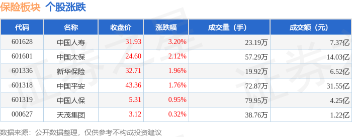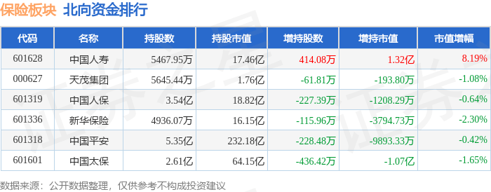 北向资金方面,当日保险板块北向资金持股市值为350.52亿元,减持1.26亿元。其中增持最多的是中国人寿,增持了1.32亿元。减持持最多的是中国太保,减持了1.07亿元。保险板块北向资金持股变动明细见下表: