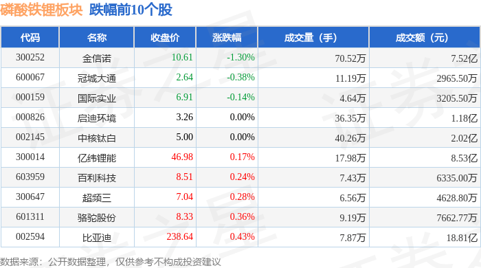 证券之星消息,11月15日磷酸铁锂板块较上一交易日上涨0.99%,西陇科学领涨。当日上证指数报收于3072.83,上涨0.55%。深证成指报收于10077.96,上涨0.72%。磷酸铁锂板块个股涨跌见下表: