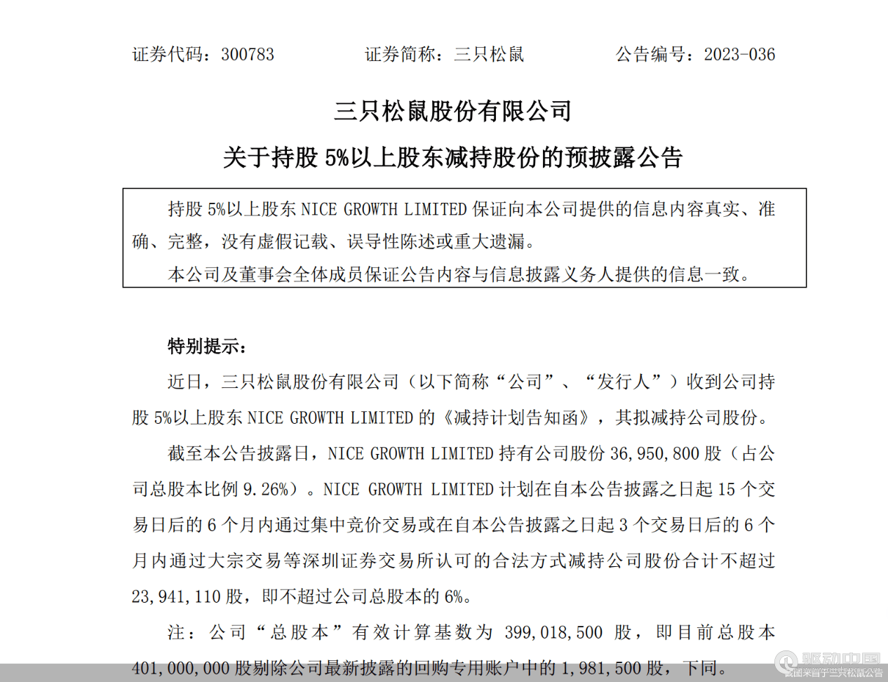 三只松鼠的股东最近公布了一项减持计划,这已经不是第一次股东减持了。6月30日,三只松鼠收到公司第二大股东NICE GROWTH LIMITED的《减持计划告知函》,其拟减持公司股份。