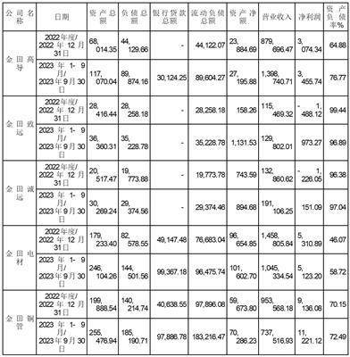 金田高导、金田致远、金田诚远、金田电材、金田铜管、广东金田、金田新材料、金田有色、杰克龙精工、重庆金田、江苏新材、香港铭泰为公司的全资子公司,兴荣铜业为公司的控股子公司,均不属于失信被执行人,信用状况良好,无影响其偿债能力的重大或有事项。