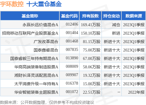 重仓宇环数控的公募基金请见下表: