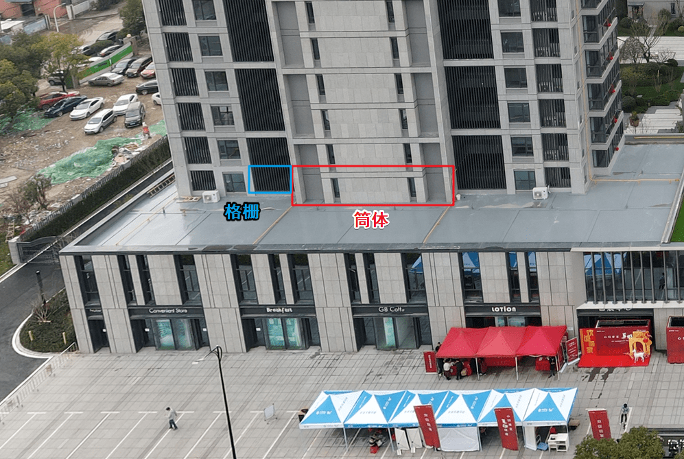 由于楼栋北侧即温州大道,存在噪音干扰。不过02室户型为中间套,北侧有筒体以及格栅阻挡,对噪音有一定的削弱作用。