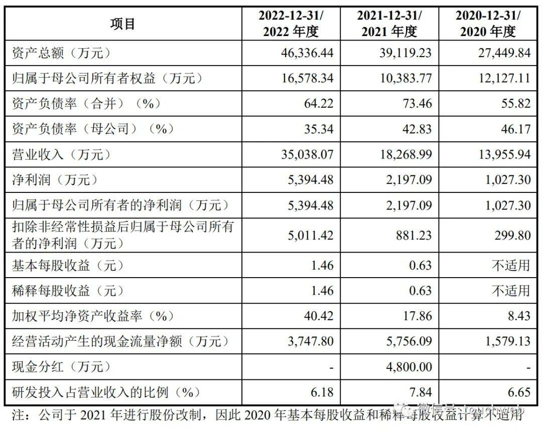 招股书显示,飞潮新材2020年、2021年、2022年营收分别为1.6亿元、1.83亿元、3.5亿元;净利分别为1027.3万元、2197万元、5394.48万元;扣非后净利分别为299.8万元、881万元、5011.4万元。