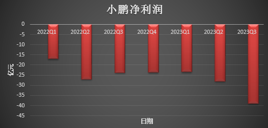 但今年第三季度,小鹏的净亏损并未收敛,还是在继续扩大,今年三季度小鹏的净亏损达到38.9亿元,同比增长63.6%,环比增长38.6%。