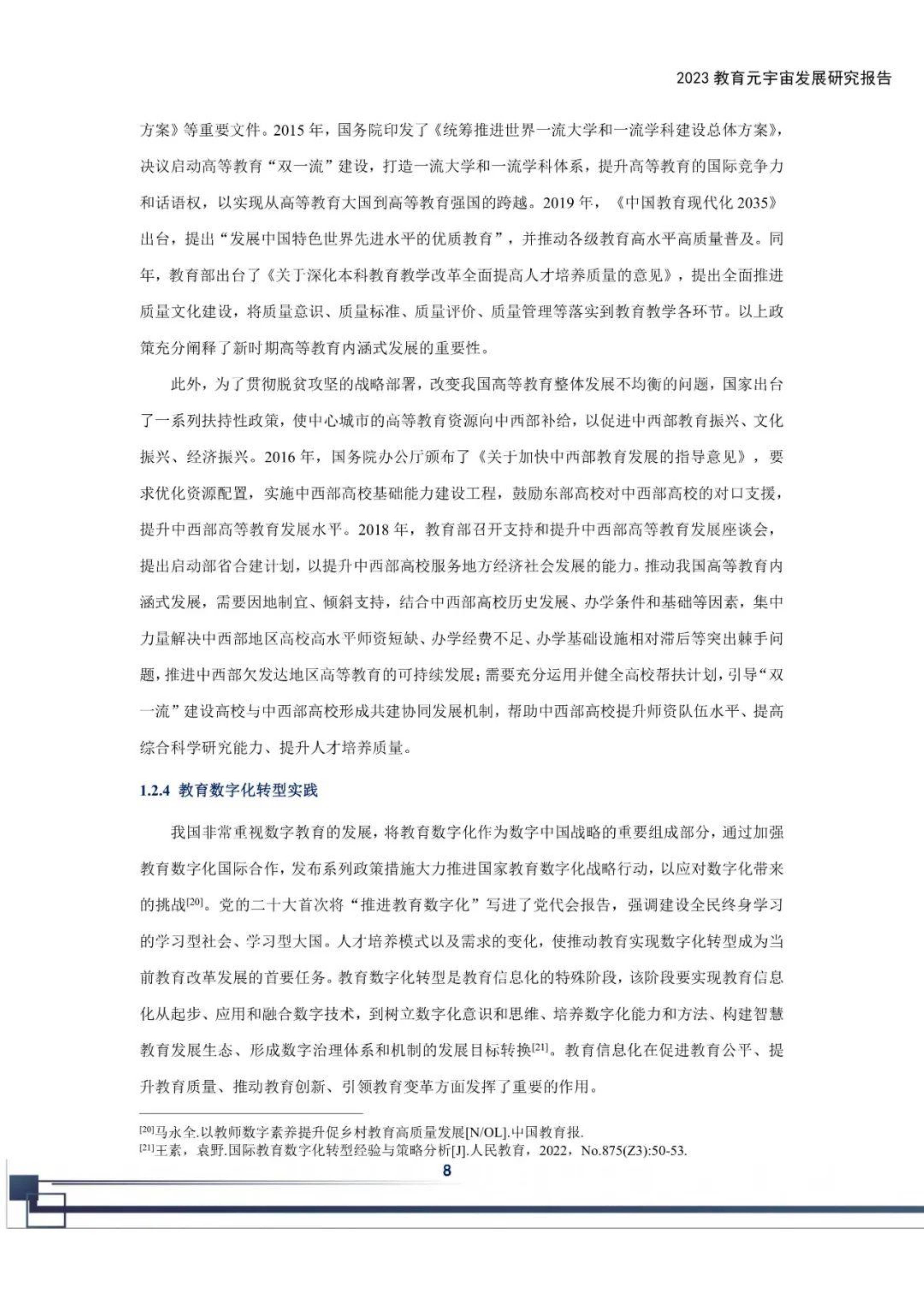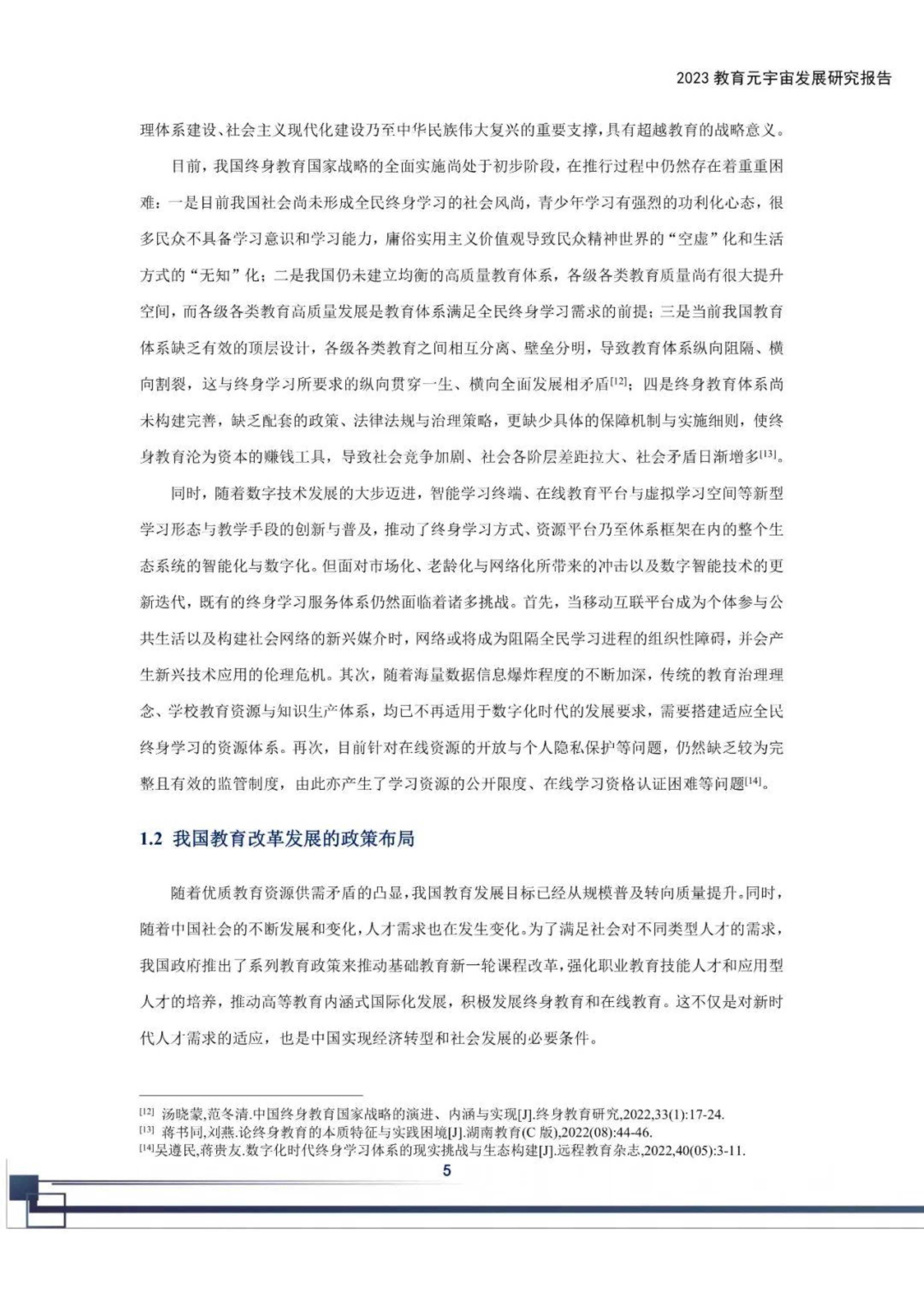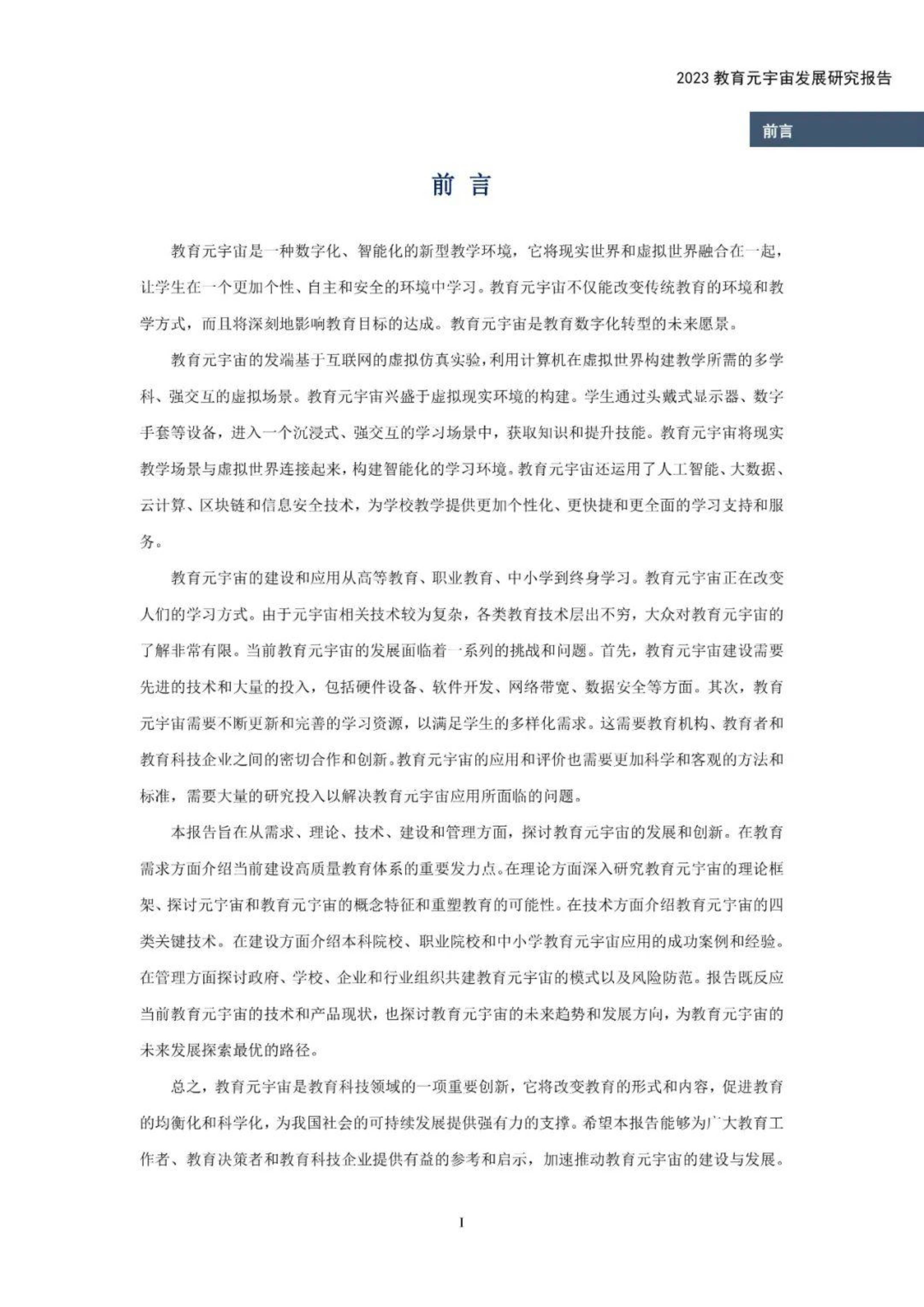 教育元宇宙的发端基于互联网的虚拟仿真实验,利用计算机在虚拟世界构建教学所需的多学科、强交互的虚拟场景,教育元宇宙兴盛于虚拟现实环境的构建,学生通过头戴式显示器、数字手套等设备,进入一个沉浸式、强交互的学习场景中,获取知识和提升技能。教育元宇宙将现实教学场景与虚拟世界连接起来,构建智能化的学习环境,教育元宇宙还运用了人工智能、大数据、云计算、区块链和信息安全技术,为学校教学提供更加个性化、更快捷和更全面的学习支持和服