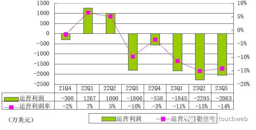 搜狐公司第三季度美国通用会计准则营业亏损为2100万美元,2022年同期营业亏损为1800万美元,上季度营业亏损为2300万美元。