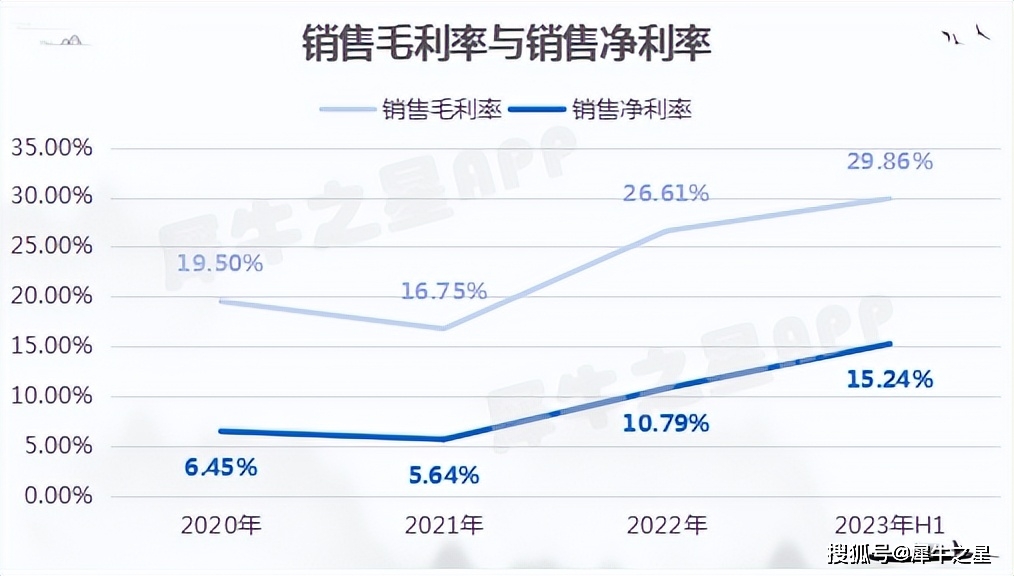 盈利能力方面,2020-2022年的销售毛利率分别为19.5%、16.75%、26.61%,2023年1-6月为29.86%;销售净利率分别为6.45%、5.64%、10.79%,呈现一定的波动性但整体呈现上升趋势,盈利能力较强。