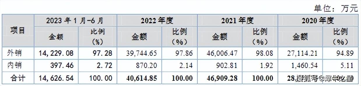 从营收结构来看,公司业务收入也主要来源于外销,2020年度、2021年度和2022年度,公司外销收入分别为2.71亿元、4.60亿元、3.97亿元,占公司主营业务收入的比重分别为94.89%、98.08%和97.86%,占比较高。