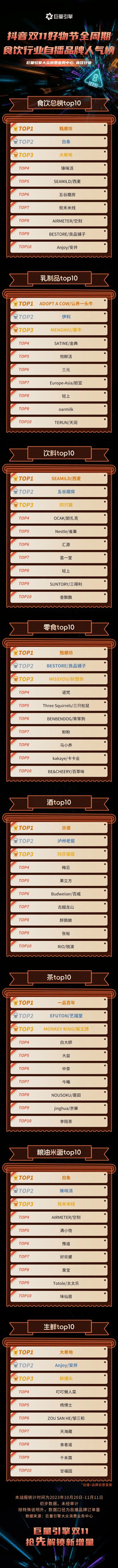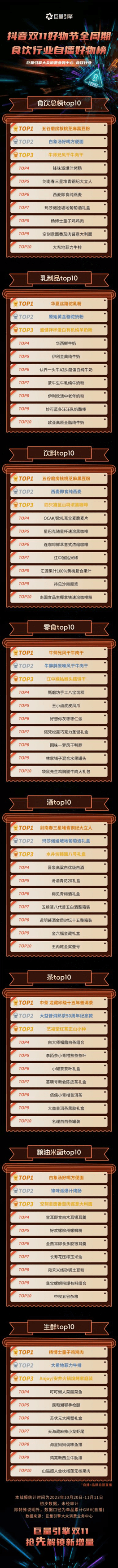 以下为2023年巨量引擎双11全周期(10月20日-11月11日)榜单: