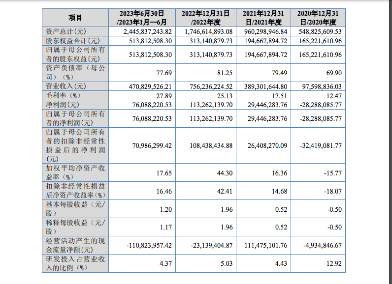 根据《北京证券交易所股票上市规则(试行)》第 2.1.3 条,发行人选择第一套标准,即市值不 低于 2 亿元,最近两年净利润均不低于 1,500 万元且加权平均净资产收益率平均不低于 8%,或者最 近一年净利润不低于 2,500 万元且加权平均净资产收益率不低于 8%。 根据发行人股票在全国股转公司的交易情况、同行业公司的市盈率情况和发行人最近一次融资 估值情况,预计发行时公司市值不低于 2 亿元;2021 和 2022 年度公司净利润(扣除非经常性损益 前后归属于母公司股东的净利润孰低计算)分别为 2,640.83 万元和 10,843.84 万元,均不低于 1,500 万元;同期加权平均净资产收益率(扣除非经常性损益前后归属于母公司股东的净利润孰低计算) 分别为 14.68%和 42.41%,符合《北京证券交易所股票上市规则(试行)》第 2.1.3 条第一套标准。