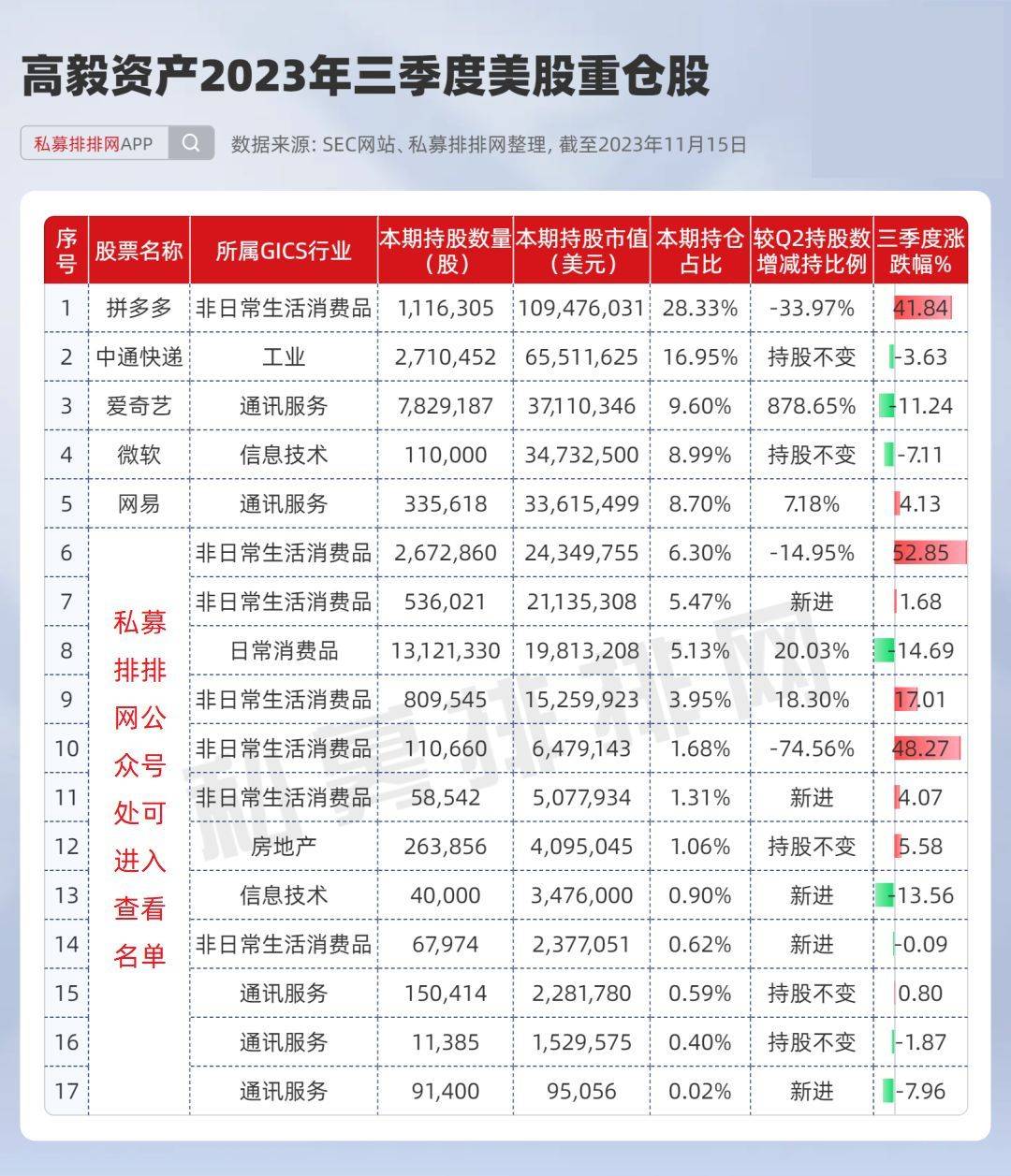 大幅加仓爱奇艺,拼多多仍为第一大重仓股!