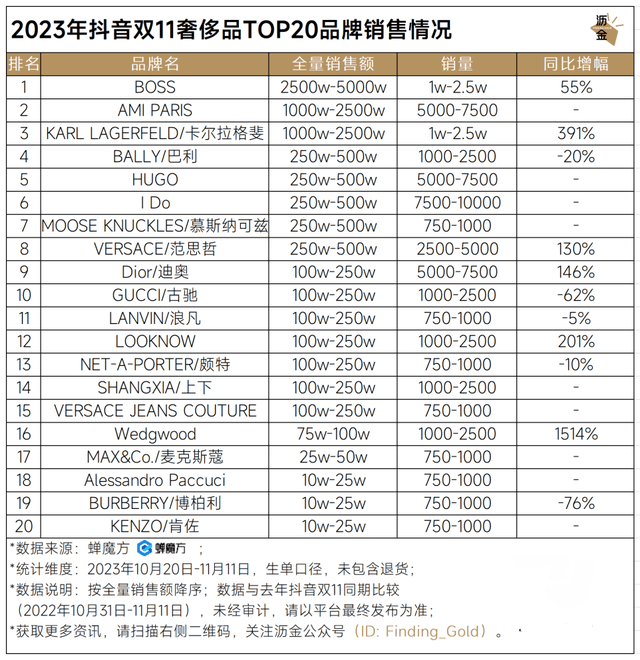 随着中国成为全球最大的奢侈品消费市场,奢侈品大牌纷纷加码中国市场,自然少不了布局拥有巨大流量池的抖音,这次抖音大促榜单内也有诸如Moose Knuckles等新面孔。