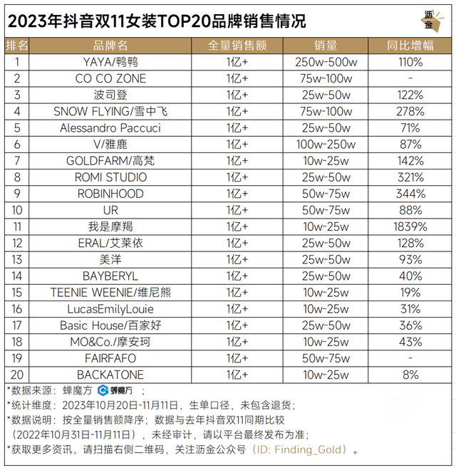 值得注意的是,本次只选择了抖音具有代表性的18个重点类目品牌榜单进行分析,且品牌表现和排名取决于品牌应对大促的策略,对于抖音双11战绩仅有部分参考作用。