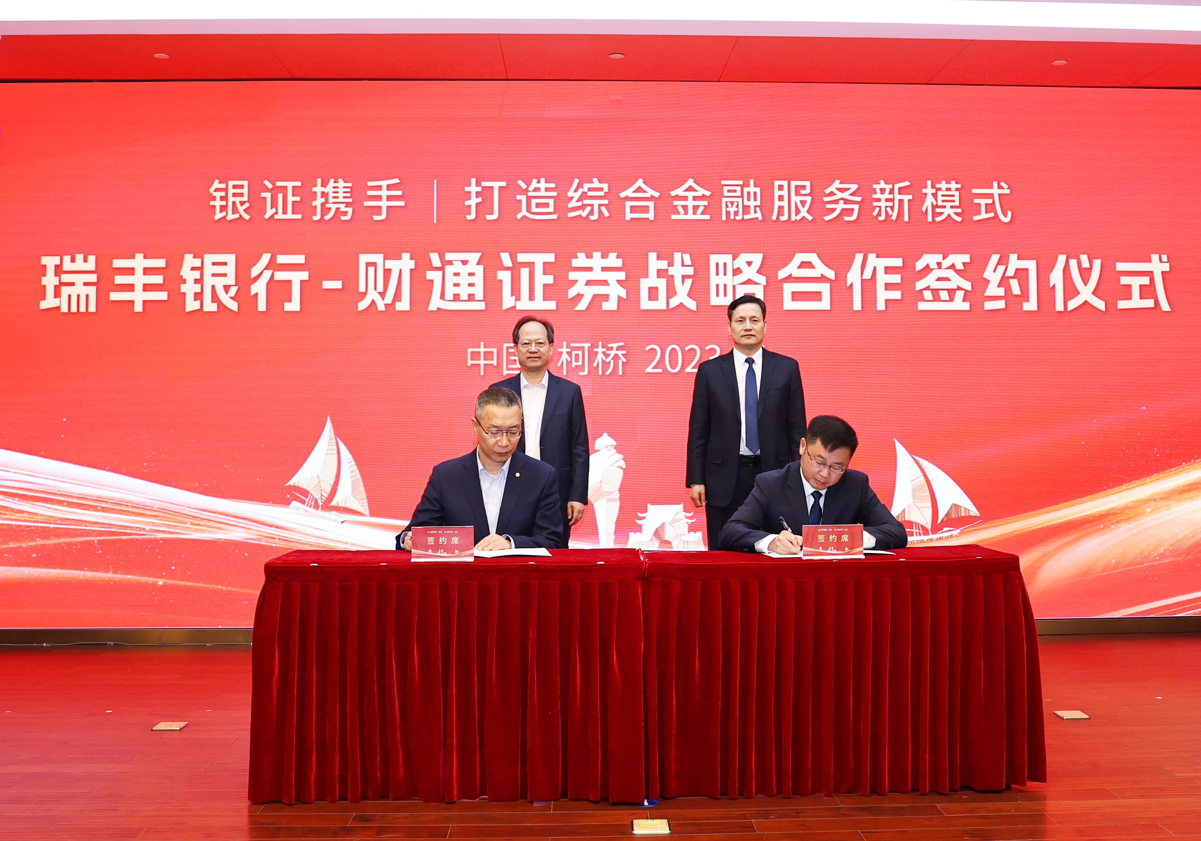 上证报中国证券网讯 11月15日下午,瑞丰银行与财通证券签署全面战略合作协议,联手打造银证合作新典范。瑞丰银行党委书记、董事长吴智晖,财通证券总经理、党委副书记黄伟建出席并致辞。