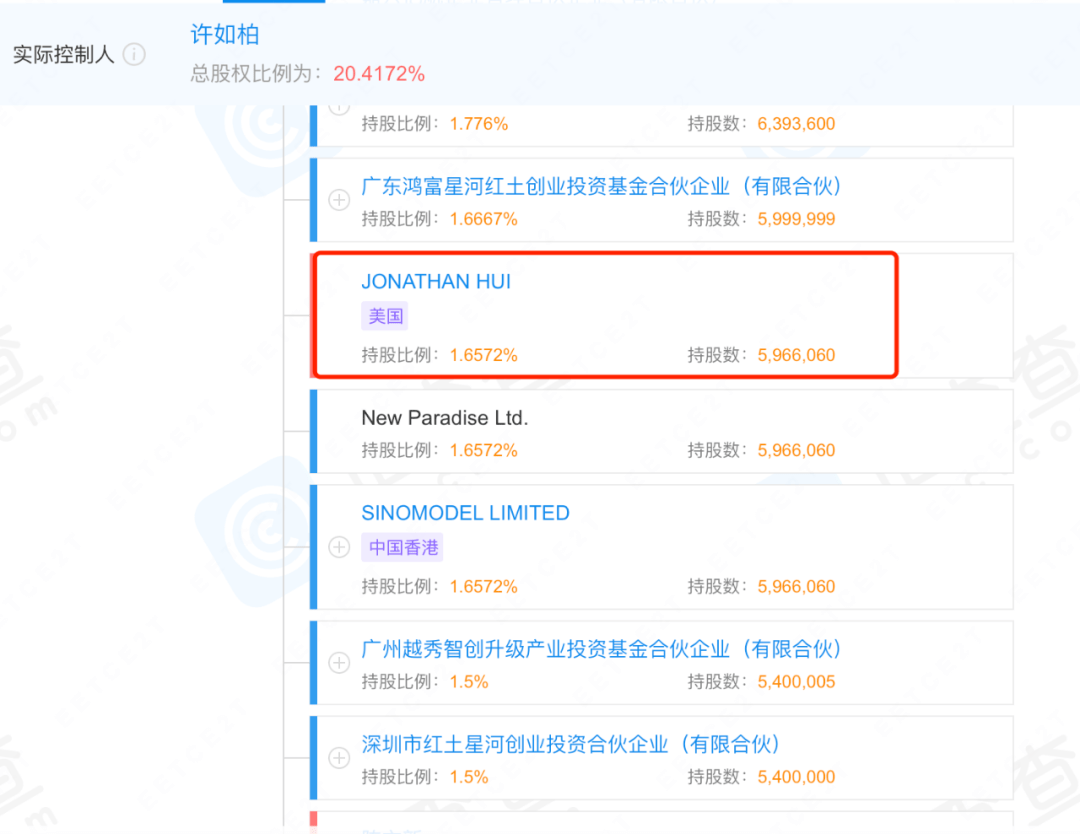 值得注意的是,公司今年5月25日发布的《创业板首次公开发行股票招股说明书(申报稿)》中显示,许如柏的弟弟JONATHAN HUI为中国香港籍,并持有美国护照。