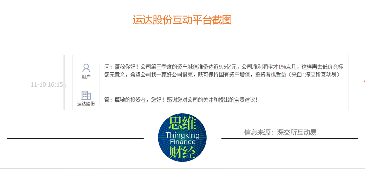 对于第三季度高达9.5亿的资产减值计提,有投资人表示关注(见下图)。