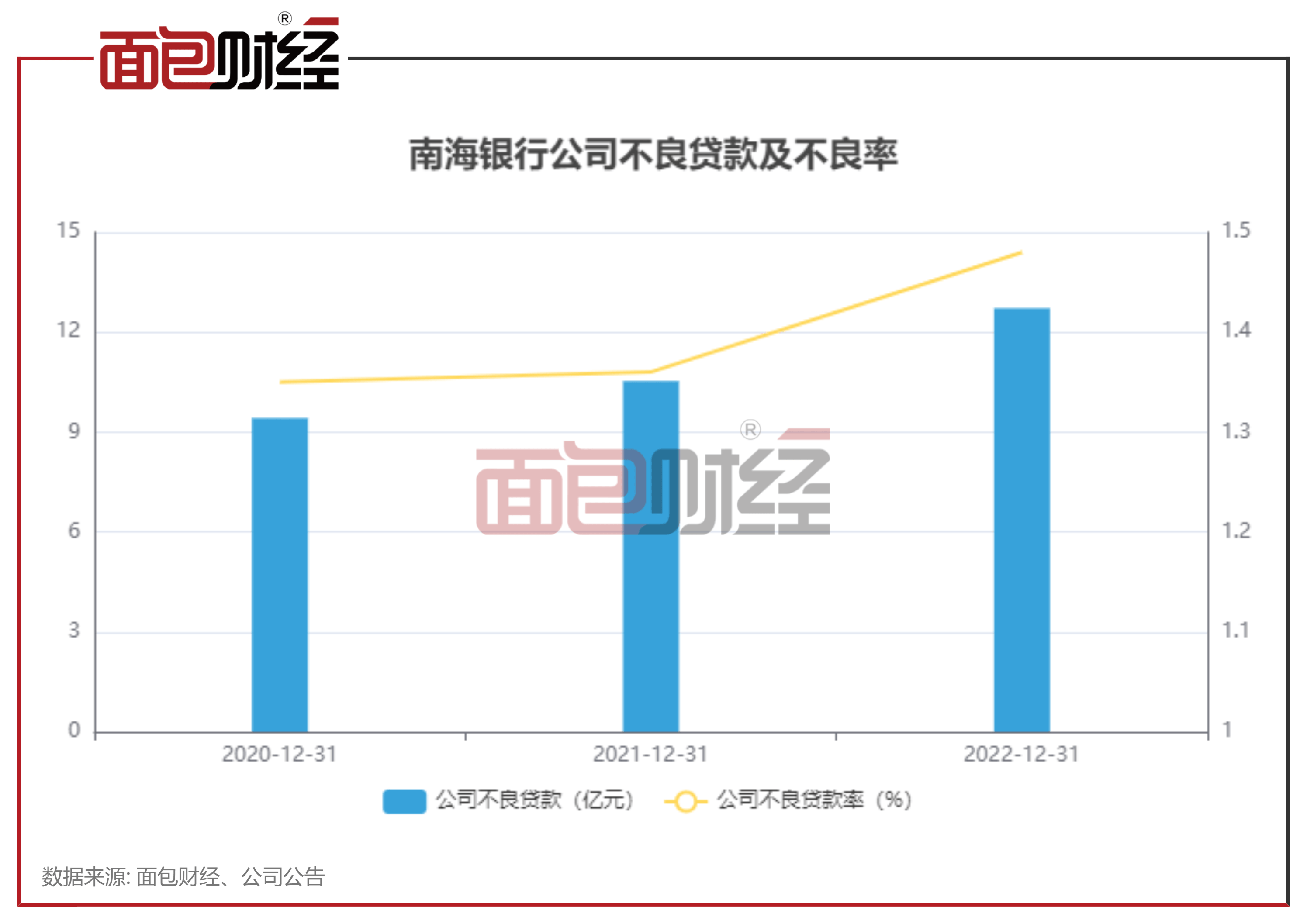 由于公司不良贷款的大幅增长,南海银行的总不良贷款及不良率均有增长。数据显示,截至2022年末,该行的不良率为1.13%,较上年末提升0.05个百分点;不良贷款余额为15.97亿元,较上年末增加2.45亿元,增幅为18.12%。