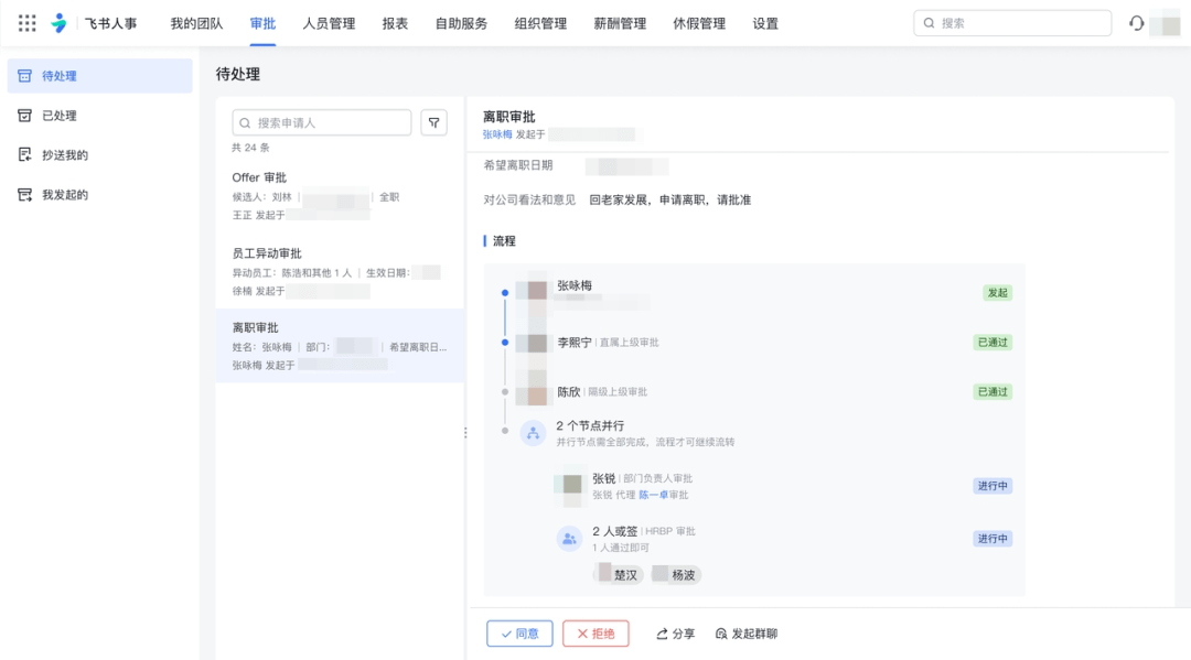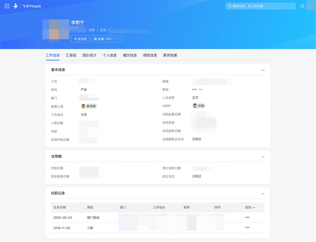 李熙宁说,是的。所以,在飞书人事里,这些关键的信息,都必须被看见。