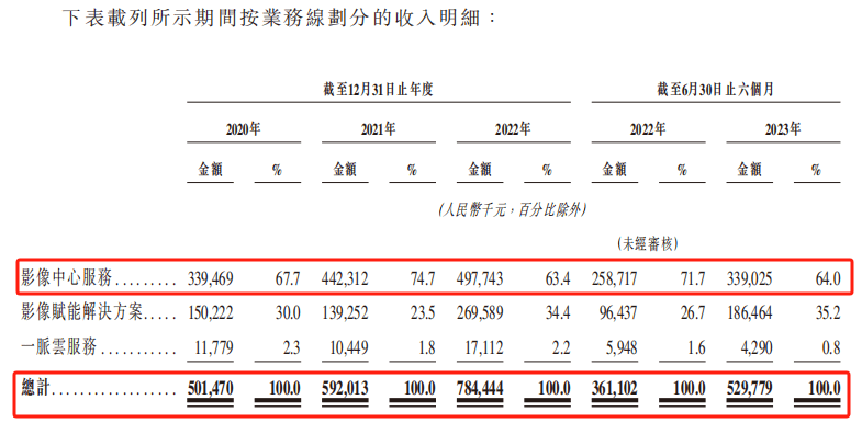 其中,影像中心服务业务是一脉阳光主要的营收来源,招股书数据显示,2020年至2022年期间,该业务营收占比均超过60%,同时该板块营收连续三年呈现上涨,由3.39亿元人民币上涨至4.98亿元人民币。