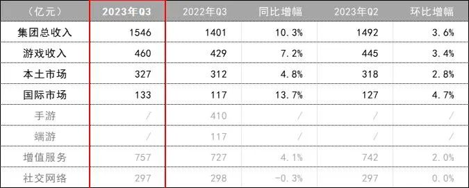 11月15日下午,腾讯发布了2023年第三季度财报。其中,游戏业务回暖迹象明显,整体收入达460亿元,同比增长7%,实现同比“三连增”。其中,本土市场收入达327亿元,同比增长5%;国际市场收入为133亿元,同比增长14%,在创下今年季度新高的同时,连续三个季度实现双位数增长。