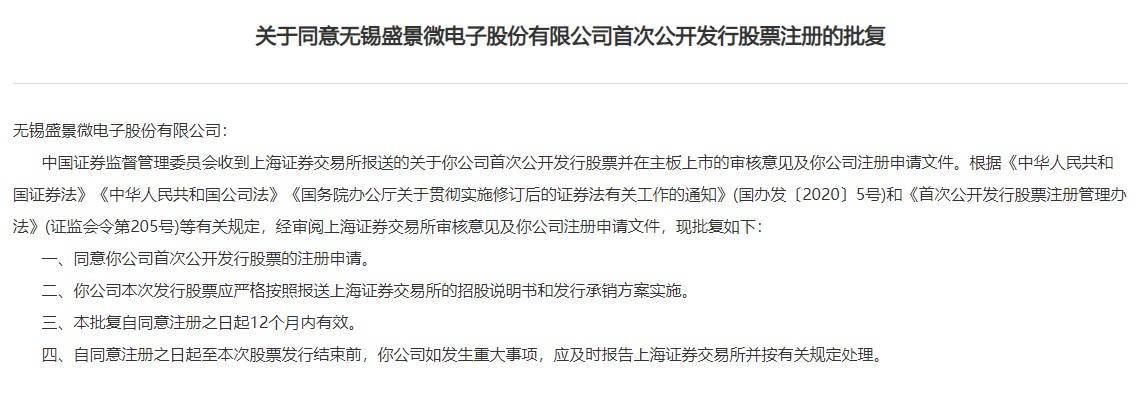 智通财经APP获悉,11月16日,证监会发布关于同意无锡盛景微电子股份有限公司首次公开发行股票注册的批复。证监会同意盛景微上交所主板IPO注册。