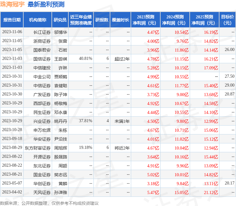 以下是详细的盈利预测信息: