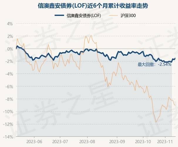 证券之星消息,11月14日,信澳鑫安债券(LOF)最新单位净值为1.005元,累计净值为1.332元,较前一交易日下跌0.1%。历史数据显示该基金近1个月下跌0.5%,近3个月下跌1.08%,近6个月下跌1.66%,近1年上涨0.06%。该基金近6个月的累计收益率走势如下图: