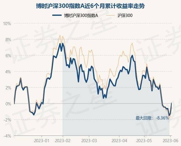 6月2日,博时沪深300指数A最新单位净值为1.5514元,累计净值为3.5853元,较前一交易日上涨1.27%。历史数据显示该基金近1个月下跌3.36%,近3个月下跌3.91%,近6个月下跌0.01%,近1年下跌3.74%。该基金近6个月的累计收益率走势如下图: