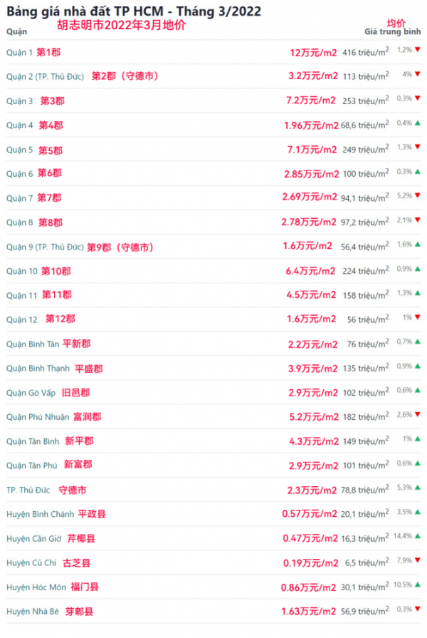 2022年4月份,越南第一大城市胡志明市,房价更是来到了越南近10年来的历史高点。仅仅6年前,这个城市的平价楼盘价格还在790美元/平方米,那时候最高已经涨到了2200美元/平方米,涨幅接近三倍!