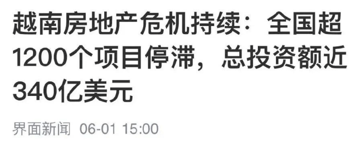 早在数月前,根据界面新闻的报道,越南已有超1200个房地产项目停滞,总投资额近340亿美元。