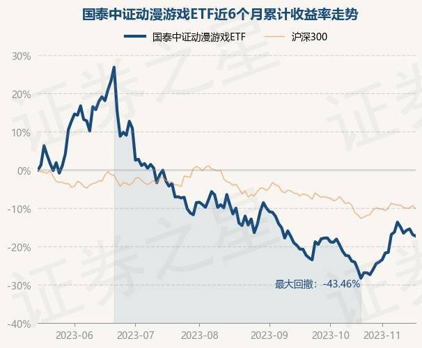 证券之星消息,11月15日,国泰中证动漫游戏ETF最新单位净值为1.091元,累计净值为1.091元,较前一交易日下跌1.74%。历史数据显示该基金近1个月上涨5.49%,近3个月下跌8.51%,近6个月下跌19.87%,近1年上涨43.76%。该基金近6个月的累计收益率走势如下图: