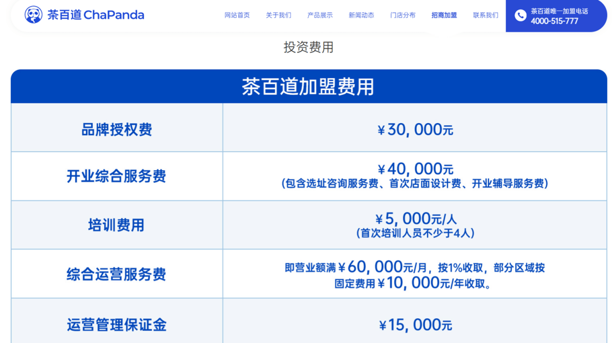 茶百道官网显示,门店加盟费包括品牌授权费3万元、开业综合服务费4万元、运营管理保证金1.5万元、首次配货费用4万元及培训费、装修费、综合运营服务费等。2020年至2022年,茶百道的加盟费收入分别为0.53亿元、1.59亿元、1.72亿元。
