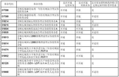 注:本公司新增委托肯特瑞销售上述列表中对应基金,上表仅就基金本身是否开通定期定额投资、转换业务和是否参加销售机构申购(含定期定额申购)费率优惠进行说明,投资者能否通过上述销售机构办理基金上述业务,以上述销售机构的安排和规定为准。