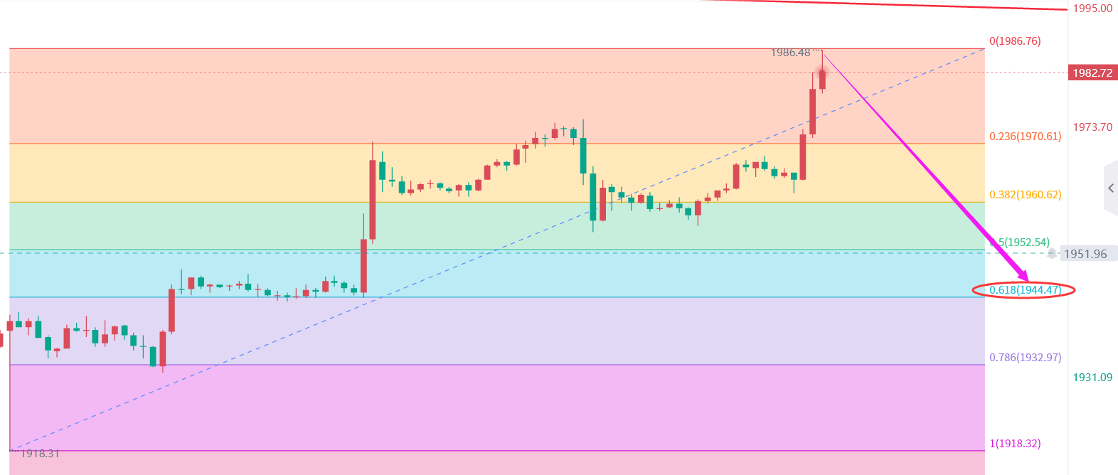 日内关注下方1975-70一线支撑。这是因为在当前的市场情况下,黄金回调到这个位置的概率较大,而且在这个位置上黄金有很强的支撑力度。同时,我们也要关注上方1988-2000的阻力情况,因为这个位置是近期黄金价格的重要压力位。总的来说,黄金市场的强劲涨势仍在持续,但同时也需要注意短期的回调风险。今日黄金操作思路上秦氏金升建议低多看看涨为主,下方关注1970支撑;