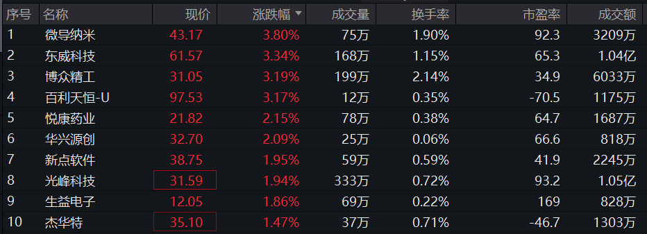 科创100ETF(588190)紧密跟踪上证科创板100指数,截至2023年11月17日9:53,指数成份股中,微导纳米领涨3.80%,东威科技上涨3.34%,博众精工上涨3.19%,百利天恒-U、悦康药业等个股跟涨超2%。