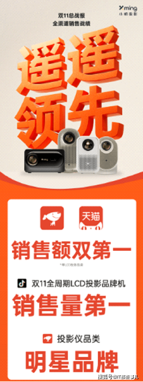 在2023年双11圆满落幕后,LCD投影行业的领导品牌小明投影品牌(以下简称“小明”)业绩大放异彩,斩获了京东、天猫平台单LCD投影销售额第一、抖音平台全周期LCD投影品牌机销售量第一。除此之外,小明投影还成为京东投影仪品类明星品牌。