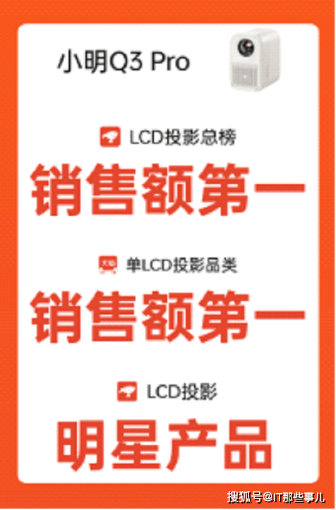 千元投影机皇小明Q3 Pro智能投影仪斩获京东LCD投影总榜销售额第一,入选LCD投影明星产品,天猫单LCD投影品类销售额第一。