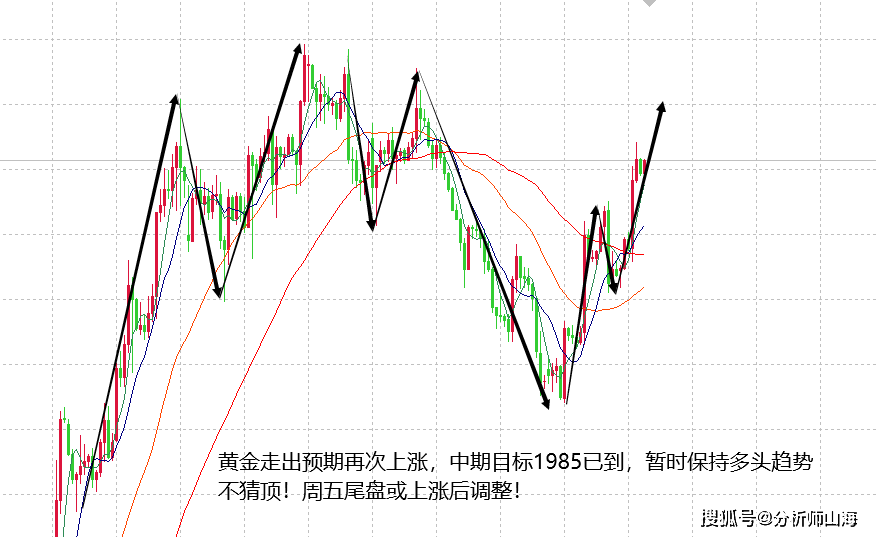 山海:黄金上涨1985目标到位,周尾盘或在强势中调整!
