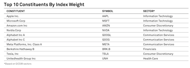 标普500指数十大权重股(图源:标普道琼斯指数公司官网)