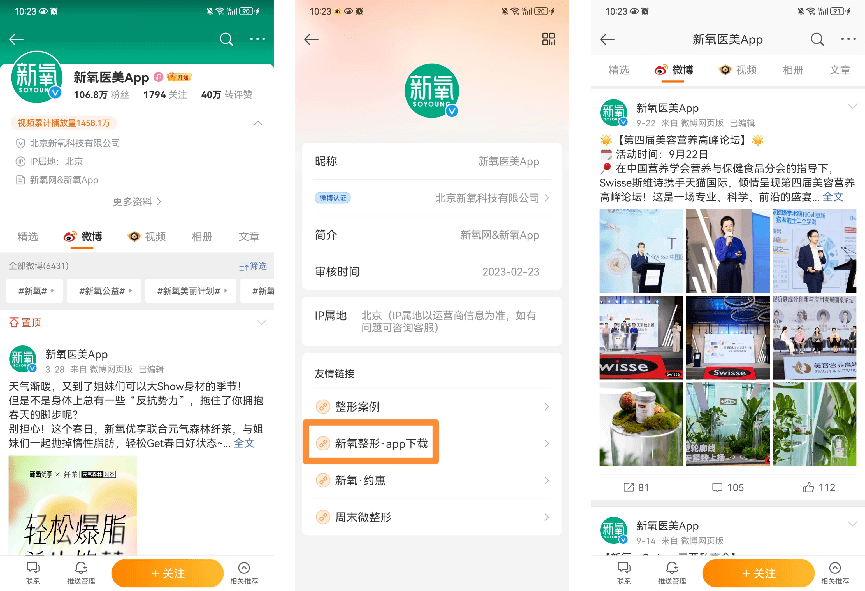 关于这一点,新氧很早就建立了以微信平台为核心的矩阵,并在抖音、微博等不同平台都进行了运营,这使得它拥有非常丰富的用户接触点。